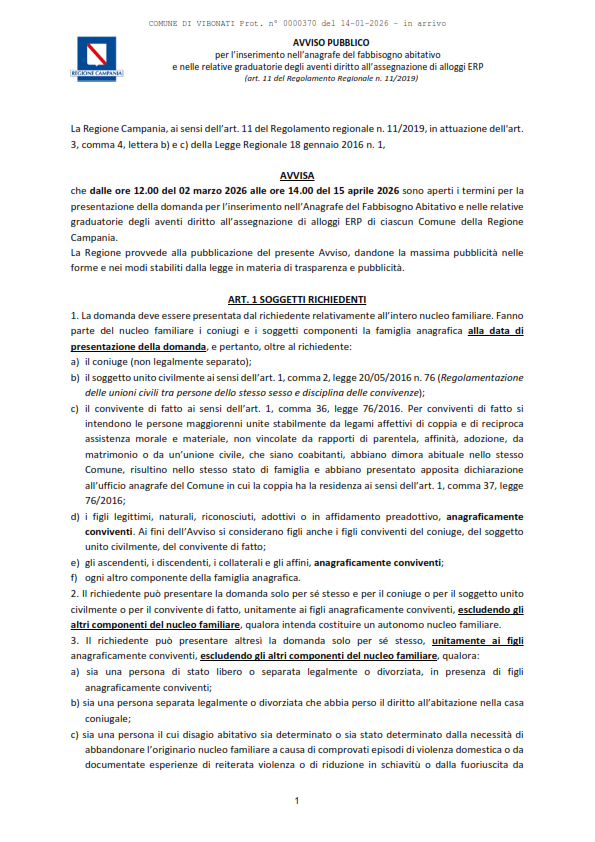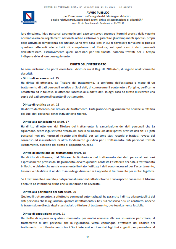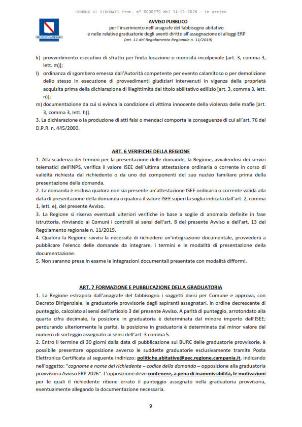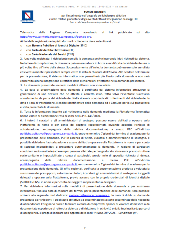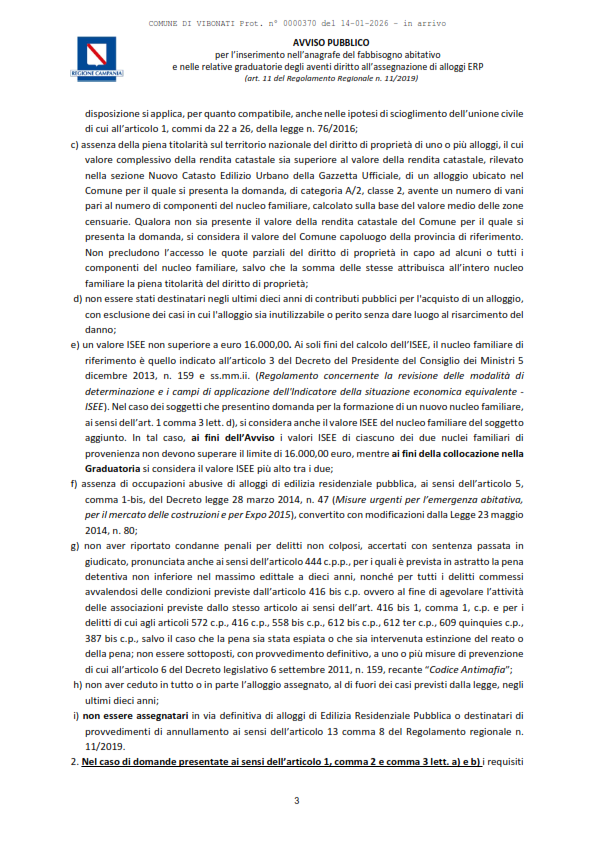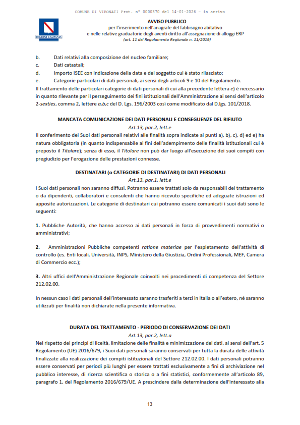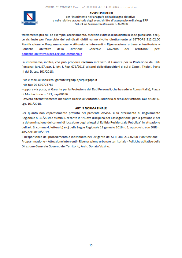 Documenti Decreto dirigenziale n.430 del 18.12.2025 Decreto dirigenziale n.430 del 18.12.2025 - Alloggi ERP Approvazione Avviso Pubblico per l'inserimento nell'Anagrafe del Fabbisogno abitativo e nelle relative graduatorie degli aventi diritto all'assegnazione di alloggi ERP (con allegato). D.D. n. 430 del 18.12.2025. Avviso Pubblico alloggi ERP Caricamento…
