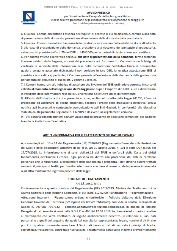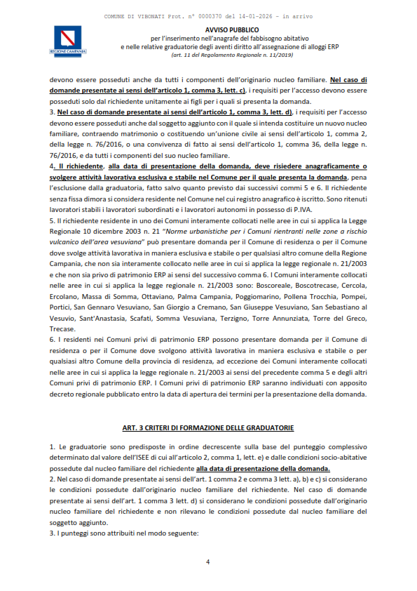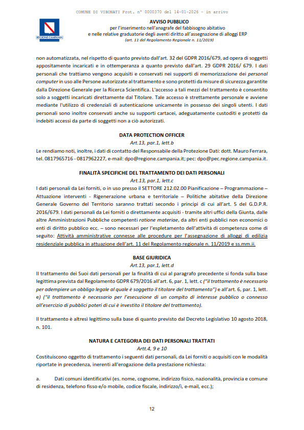 Documenti Decreto dirigenziale n.430 del 18.12.2025 Decreto dirigenziale n.430 del 18.12.2025 - Alloggi ERP Approvazione Avviso Pubblico per l'inserimento nell'Anagrafe del Fabbisogno abitativo e nelle relative graduatorie degli aventi diritto all'assegnazione di alloggi ERP (con allegato). D.D. n. 430 del 18.12.2025. Avviso Pubblico alloggi ERP Caricamento…